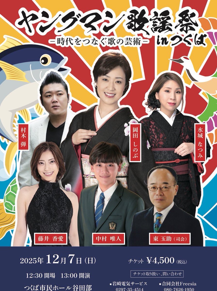 なっちゃーん📣おおつかです ヤングマン🎵さぁ立ち上がーれよ🎶 12月7日(日) #ヤングマン歌謡祭 開催 #岡田しのぶ さん #村木弾 さん #藤井香愛 さん #中村唯人 さん #水城なつみ 司会は #東玉助 さん チケットは、岩崎電気サービスさま または、メールで llc.freesia2531@gmail.com お早めに😊 pic.x.com/wyBcqmVlKW