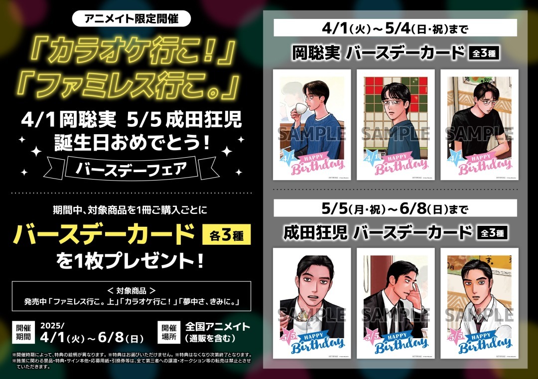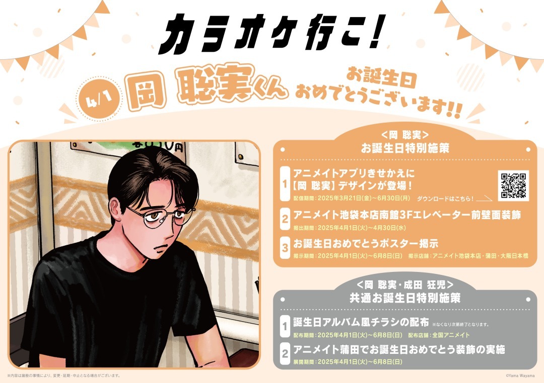 \\HAPPY BIRTHDAY// 本日4/1は「#カラオケ行こ!」「#ファミレス行こ。」 #岡聡実 くんのお誕生日です! おめでとうございます! アニメイトではお誕生日をお祝いする特別施策を実施中! さらに全国アニメイトでフェアもスタート! ■詳細 x.gd/7HU6D pic.x.com/9vceyqhoH3