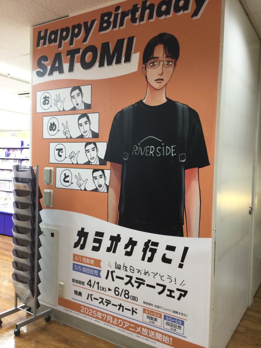 本日4/1は「#カラオケ行こ!」「#ファミレス行こ。」 #岡聡実 くんのお誕生日!おめでとうございます! アニメイト池袋本店では3Fの壁面を聡実くん仕様に! ■期間:4/30まで ■場所:南館3Fエレベーター前壁面 全国アニメイトでフェアも開催中! 詳細はこちらx.gd/mpcCo pic.x.com/E67DTblCT8