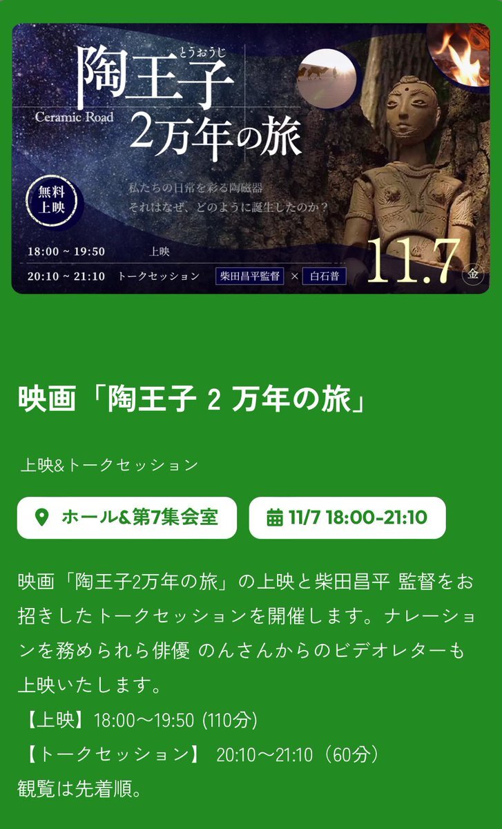 💠上映情報🤴 #CERASTA2025 『#陶王子2万年の旅』 日時:11/7(金)18:00 会場:愛知県名古屋市 #岡谷鋼機名古屋公会堂 詳細→cerasta.com/2025 #柴田昌平(@ShoheiShibata)監督トークセッション🎙️&語り #のん(@non_dayo_ne)ビデオレター出演🎞️ @Ceramic_asia #この世界の片隅に #今日の水口さん pic.x.com/kNpiveDqnU x.com/non_dayo_ne/st…