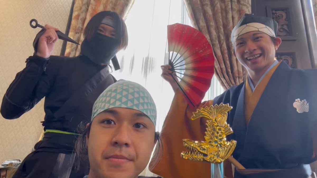 #名古屋城検定 無事、全級とも試験が終わり申した! 此の度得た知識を以て より一層、名古屋城をば 楽しんで参られればと存じまするの〜〜 豊臣秀吉様と十吾殿にも 御話を伺い申したが、 おや…様子が……?? #名古屋おもてなし武将隊 #服部半蔵忍者隊 #岡谷鋼機名古屋公会堂 草二 pic.x.com/lbMIUYyvb3 x.com/nagoyabushotai…