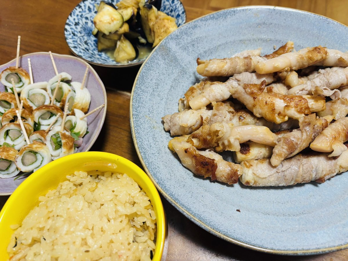 夕飯、岩下の新生姜の肉巻き 出てきた✧ \(°∀°)// ✧!!! やっぱ美味しい✨ 細切りにした細巻きの方が好き🫶✨ 新生姜の炊き込みご飯… ナスの新生姜和え… 新生姜しそちくわ巻き… イワシカちゃん以上に、 新生姜になれそう( ¨̮ )✨ #岩下の新生姜の日 pic.x.com/VBT8EjgB24