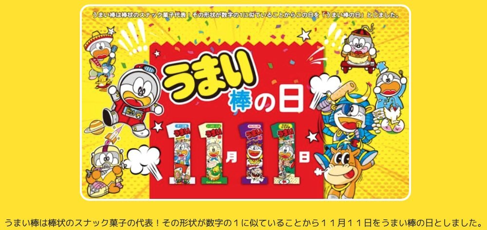 【おさらい】今日は何の日 #うまい棒の日 #岩下の新生姜の日 #プラズマクラスターの日 #麺の日 #鮭の日 #ベースの日 x.com/uchikubigokumo…