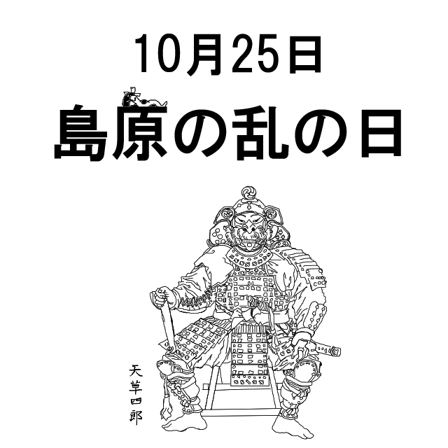 10月25日(土) 先勝(丁卯) おはようございます #今日は何の日 #島原の乱の日 1637年(寛永14年)のこの日、過酷な年貢の取立てやキリシタン弾圧に耐えかねた島原の領民が代官・林兵左衛門を殺害し、「島原の乱」が勃発した。 pic.x.com/isDFupbEGJ
