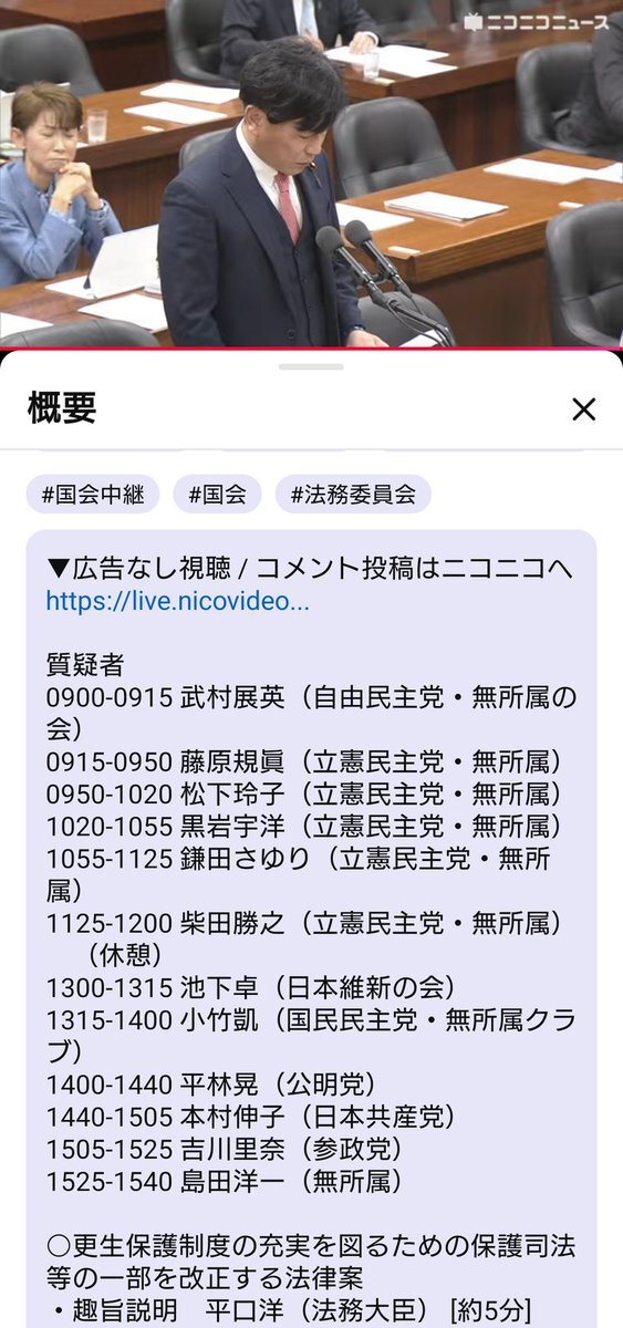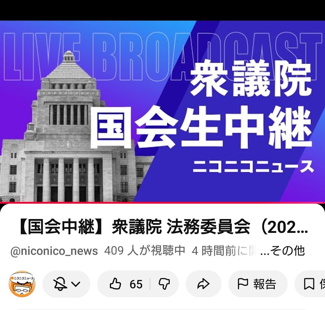 ニコニコニュース❗️ 衆議院 国会中継 法務委員会 日本保守党の島田洋一衆議院議員は15:25〜15:40です‼️ 島田先生頑張って下さい‼️😊✊ @nico_nico_news @ProfShimada #日本保守党 #島田洋一衆議院議員 #国会中継法務委員会 #日本を豊かに強く youtube.com/live/aCGGcULe-… pic.x.com/PxC3I2wUNm