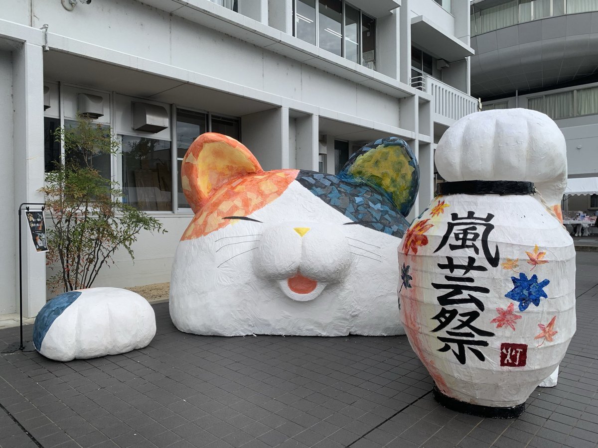嵯峨美術大学・嵯峨美術短期大学の学園祭 『嵐芸祭』 いきなり正門に、大きな猫さまが😻 美大のお祭りはまるで京まふのように、たくさんのイラストやグッズ、芸術作品に溢れていました☺️ お声がけいただきありがとうございました♪ #嵯峨美術大学 #嵯峨美術短期大学 #嵐芸祭 # #京都 pic.x.com/iNYjCJGUFI