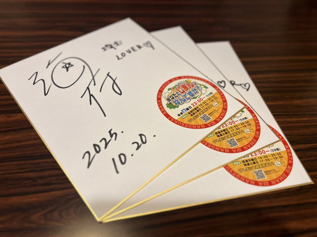 『あなじまプレゼント情報!』 番組から「川島海荷」さんの サイン色紙を3名様にプレゼント✨ 🎁応募方法🎁 ① @anajima_3 をフォロー ② この投稿をリポスト かリプライ 〆切11月18日(火)まで 📨当選はDMにてご連絡します ‼️ #テレ玉 #あなじま #プレゼント #川島海荷 pic.x.com/GOCv741jqd