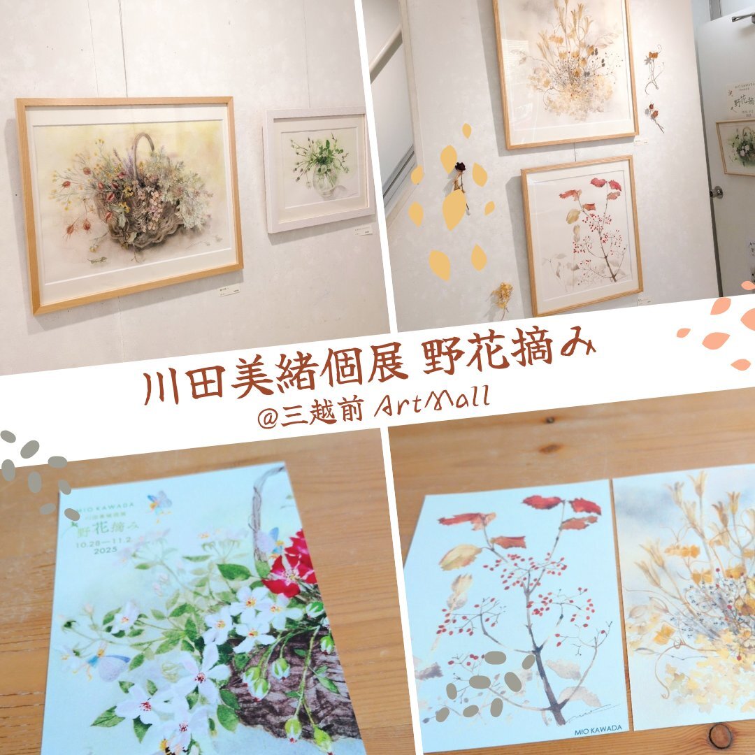 10月28日の営業終了しました🌉 川田美緒個展「野花摘み」は盛況で初日を終えました🐝ドジャース試合中は閑古鳥でしたが⚾️後半はご来場多数で良かったです🥰 #日本橋 #三越前 #アートモール #artmall #アートショップ #artshop #アート購入 #川田美緒 #MioKawada #水彩画 #野花摘み #植物画 #花の絵 pic.x.com/0Xu4GD2JWb
