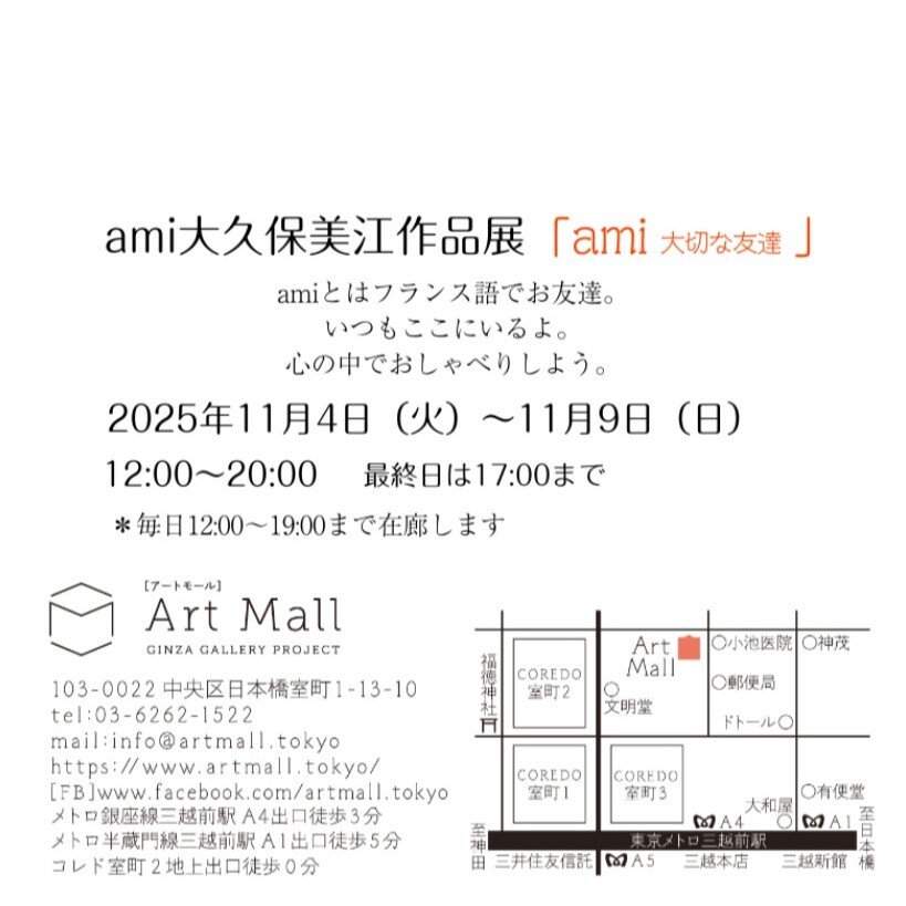 11月2日の営業終了しました🌆 川田美緒個展は盛況で閉幕🍁ご来場ありがとうございました😘 さて明日の休館日を挟んで火曜日からはドール作家ami大久保美江作品展が始まります🐭お楽しみに~🙋‍♀️ #日本橋 #三越前 #アートモール #artmall #アートショップ #artshop #アート購入 #川田美緒 #ami大久保 pic.x.com/ZEiVWiTeyQ