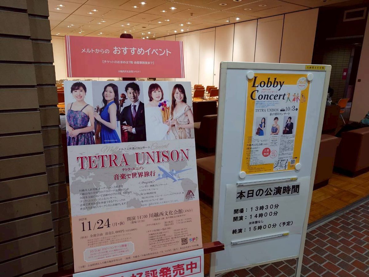 終演! ありがとうございました!! 11/24に川越西文化会館(メルト)のホールでも演奏させていただきます♪ #川越西文化会館 #ロビーコンサート #メルトふれあいコンサート #TETRAUNISON pic.x.com/oIznUiCkJt