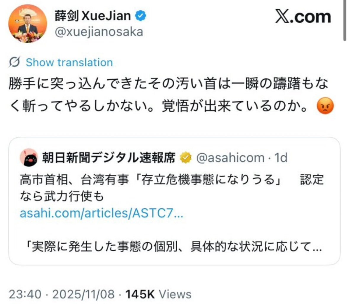 中国総領事が朝日新聞社の記事を取り上げて批判してるので、今更言い訳しても無駄なんだわ💢 #放火魔 #工作活動 #自滅 pic.x.com/bDS1Zv6Qm3 x.com/asahi_koho/sta…