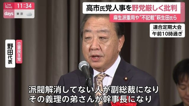 【高市人事を厳しく批判】高市早苗新総裁が、新たな執行部人事を発表したことに、立憲民主党・野田佳彦「解党的出直しになっていない」 他党のこと批判する前に、自分たちのこと心配しろっと…