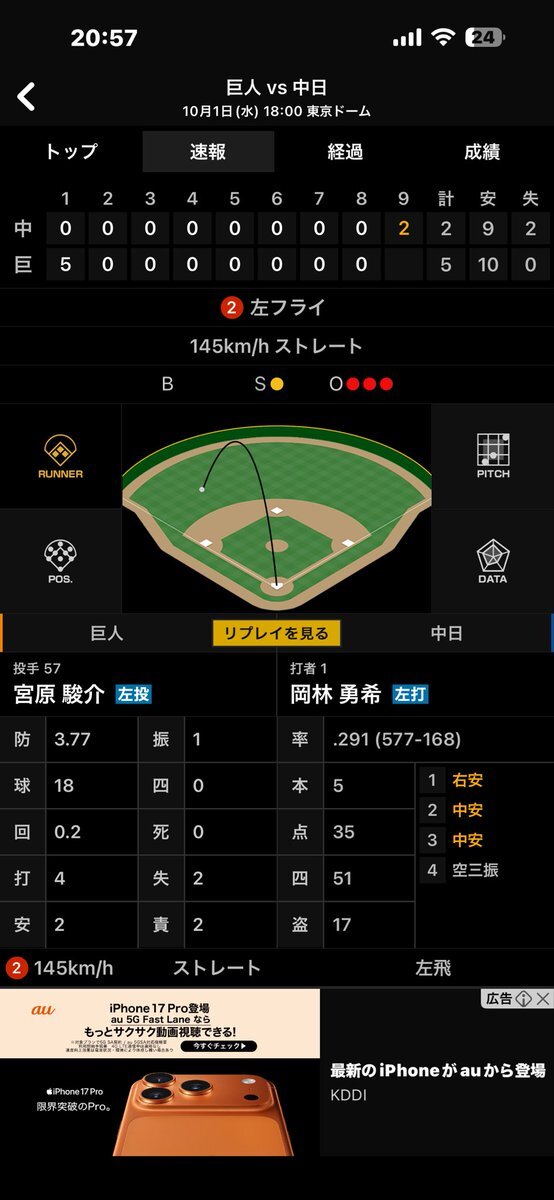 【一軍】vs 中日 東京ドーム (試合終了) G 5-2 D 9回は宮原駿介投手が登板、2ランホームランを浴び2失点するも、後続を抑え試合終了。今季最終戦を勝利で飾る! 見逃し配信はGIANTS TVで! tv.giants.jp #新風 #ジャイアンツ