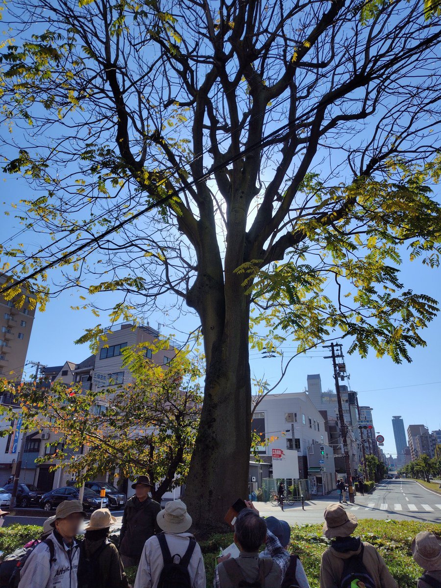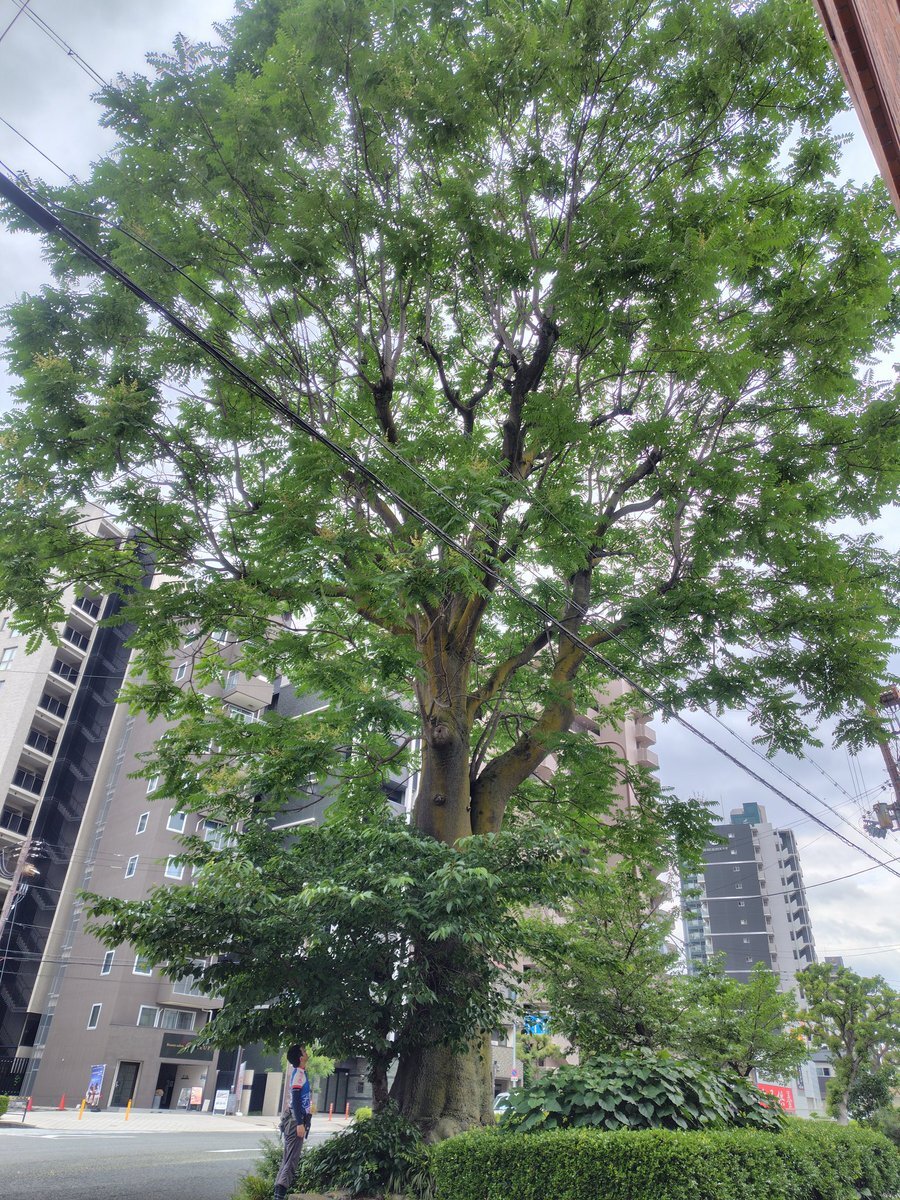 勝山通のニワウルシ 幹周り:4.65m、樹高:20m超 明治初期に日本に持ち込まれた樹種。成長が早く、繁殖力も強く侵略的外来種に指定される。この樹も巨大だが樹齢は古くても150年未満しかない。このような樹であるためか五條宮前に在るがご神木ではない。 maps.app.goo.gl/BRWQQvAyEiY16f… #巨樹 #大阪市天王寺区 pic.x.com/G1yvxo90Q5