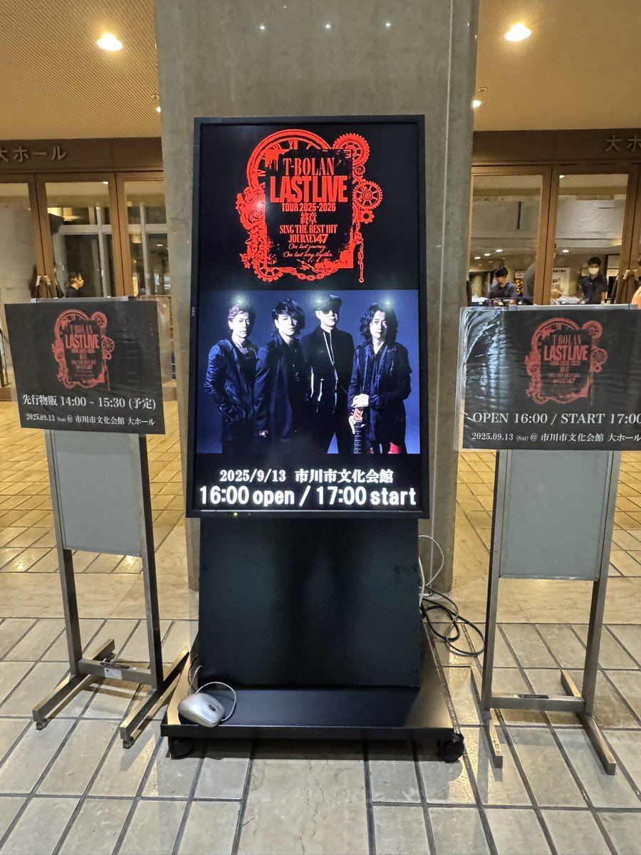 今日はTM・・・ではなくて T-BOLANのライブに来てます LAST TOURなので行っておかないと思いチケットとってよかった 初めてだけどセトリも含めて楽しみだなぁ #TBOLAN #市川文化会館 pic.x.com/ZGrjpZPD7b x.com/hot_ohzy/statu…