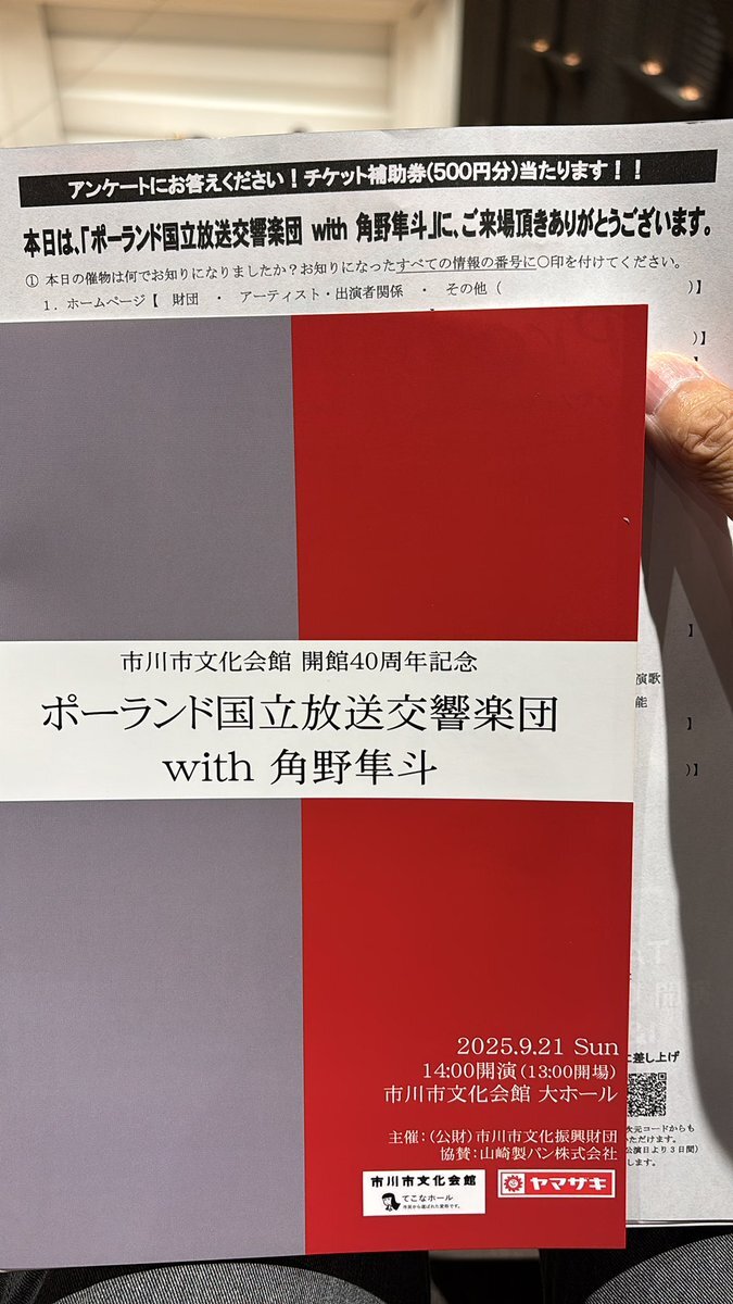 今日は高校の同級生と市川へ。 角野隼斗くんのコンサートがお初🎵という方もご一緒に😊 ピアノ協奏曲3楽章の最後の最後に咳😷が出そうになったけど、頑張って拍手👏に紛れ込ませました😅 #市川文化会館 #角野隼斗 #ポーランド国立放送交響楽団 #マリン・オルソップ pic.x.com/ge6d6FnXE6