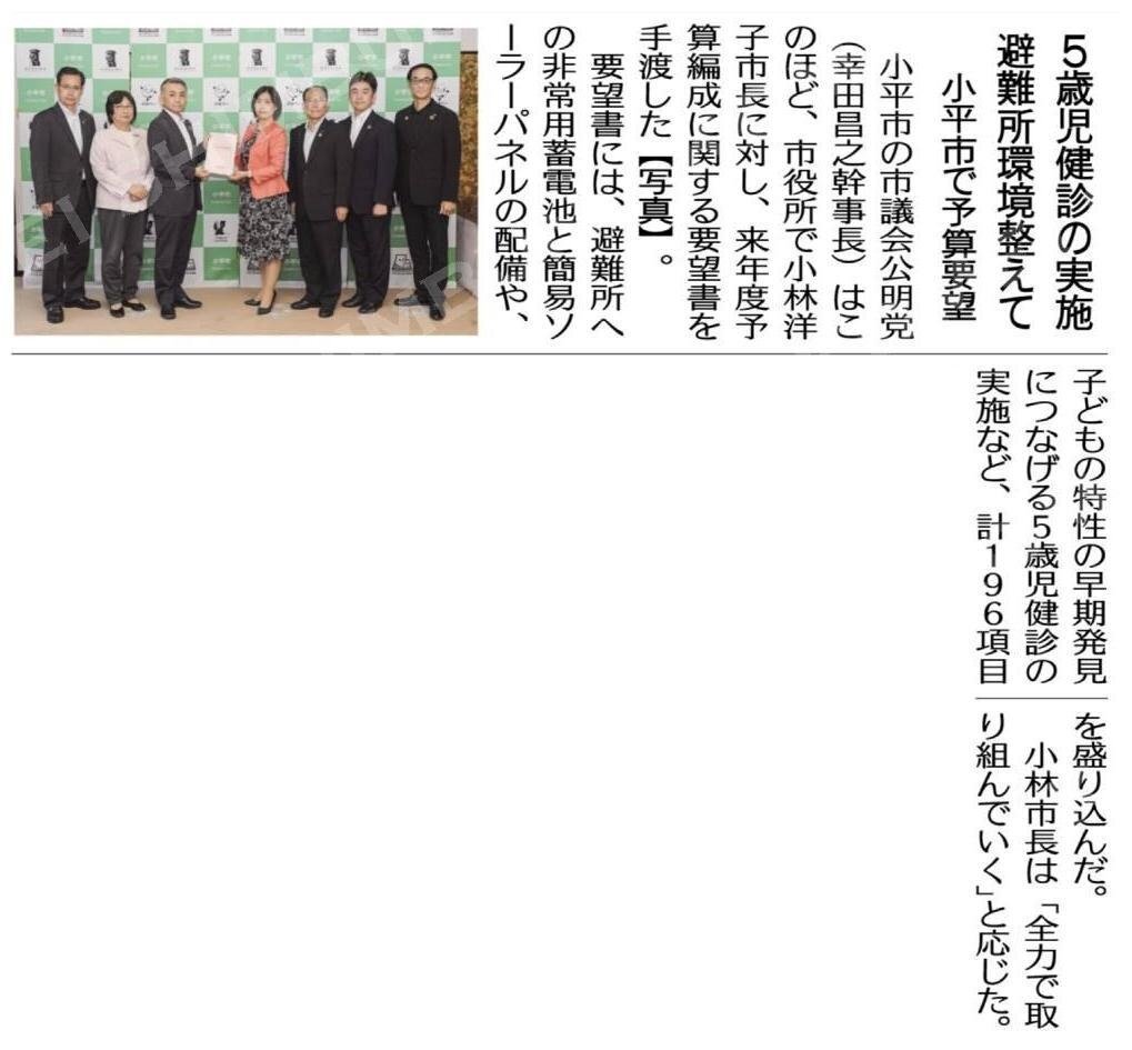 5歳児健診の実施、避難所環境整えて/小平市で予算要望 #公明新聞電子版 2025年11月09日付 komei.or.jp/newspaper-app/