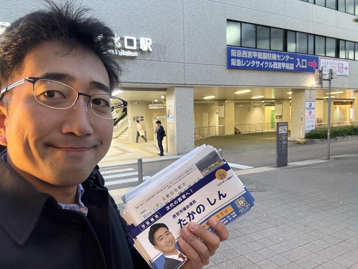 このところ、会派やしぶや議員の駅立ちを続けていましたが、今日からしばらくは自分の市政報告をお配りします。 甲東園の東側からスタートです!! #西宮 #西宮市 #政治 #無所属 #市議会 #市会議員 #市議会議員 #西宮市議 #西宮市会議員 #西宮市議会議員 #西宮市議会 pic.x.com/MjxN5wXJiG