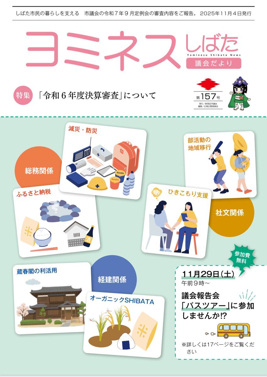 本日、新発田市議会だより(ヨミネスしばた)発刊日です。 以下、議会だよりPDFになります。 shibata-shigikai.jp/voices/gikaido… #新発田 #新潟 #市議会 #議会だより pic.x.com/wyuzraQvtC