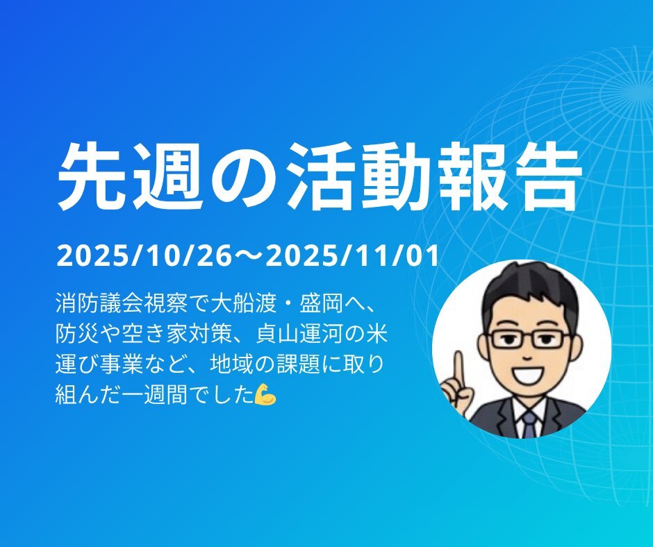 こんばんは、土見です😊 先週の活動報告です! 消防議会視察で大船渡・盛岡へ、防災や空き家対策、貞山運河の米運び事業など、イベントの多い一週間でした💪 #今週のつちみ #塩竈 #市議会 #防災 #まちづくり pic.x.com/rRCUA75tEw