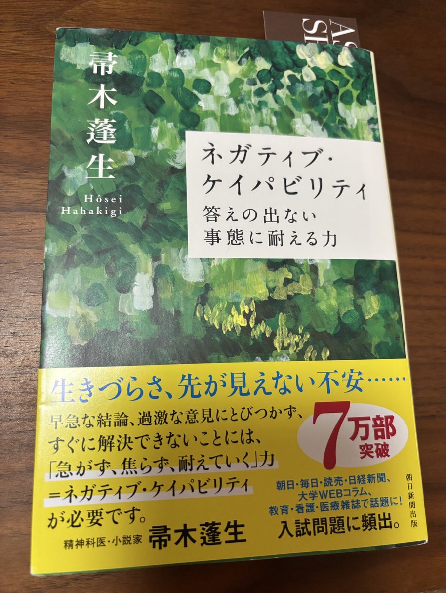 家事の合間に4章まで読み進めた 終末期医療(緩和ケア)を例えた内容に、数年抱えたままだった心の靄が少し薄れた感覚  #ネガティブケイパビリティ #帚木蓬生 x.com/babibaan_niziu…