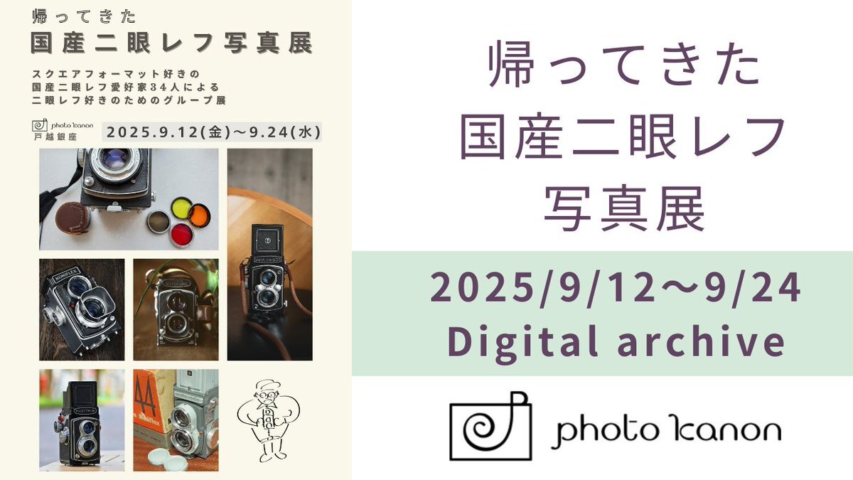 東の地でも人気のDMでしたこちら、帝塚山ライムライトさん @arbusthecat の「AUTOCORDERS」展は本日スタート。 #帰ってきた国産二眼レフ写真展 に参加された方々の出展もあり、中判スクエア写真の競演たのしそう◎関西の皆さまへおすすめの写真展です! #フィルム写真 pic.x.com/F0LzrXDx71 x.com/arbusthecat/st…