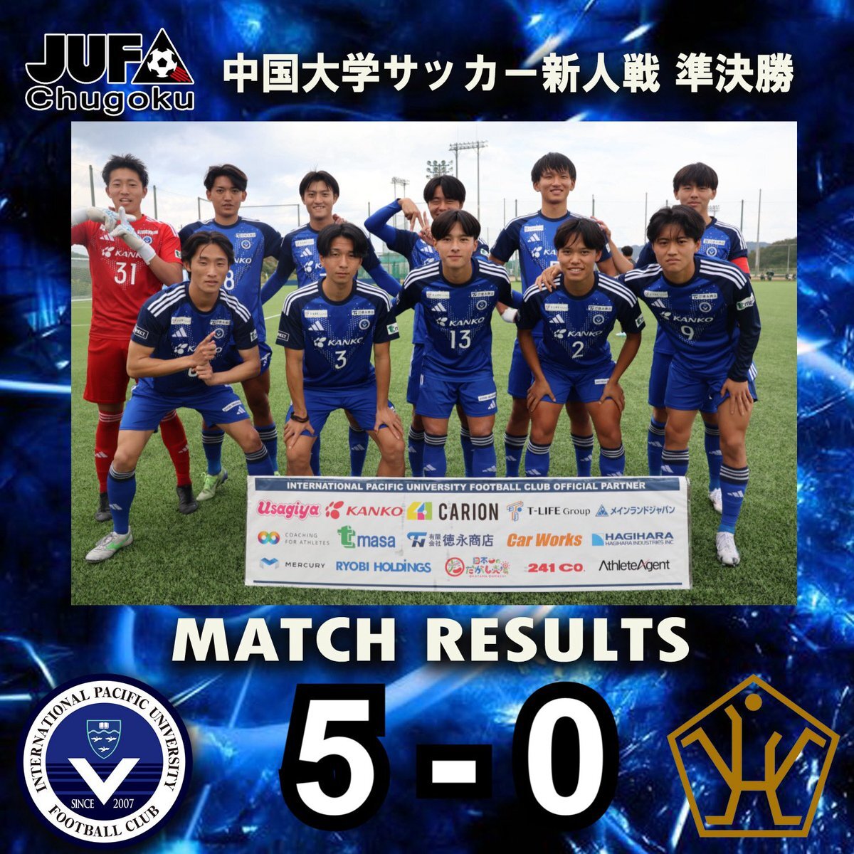 令和7年11月2日(日)【試合結果】 🏆 #中国大学サッカー新人戦準決勝 🆚 #環太平洋大学 vs #広島大学 . 前半2-0 後半3-0 合計5-0 . 【得点者】 8 #森本匠#常翔学園) 9 #若尾以心 (#創志学園)② 5 #津川侑和 (#徳島北) 23 #中井理貴 (#相生学院) pic.x.com/tGx50svSCm