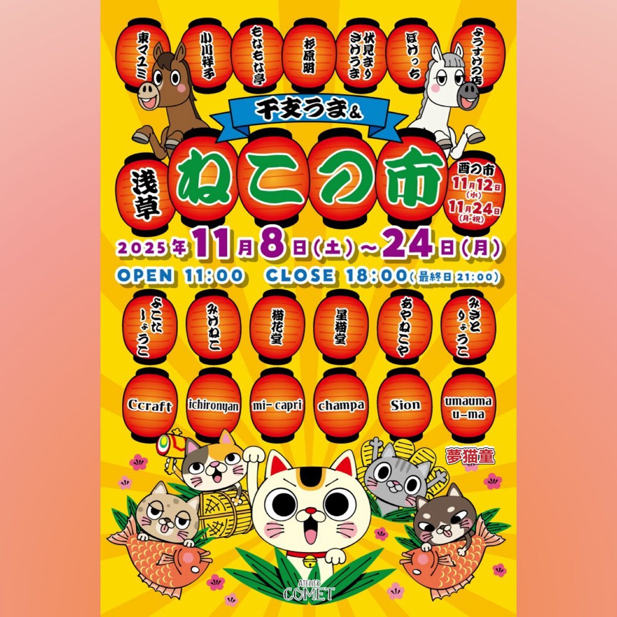 #干支うまと浅草ねこの市展 開催中 11/24日(月祝)迄 11:00〜18:00 本日Ccraftさん@ccraft_hmg 在廊です 🐴好きさんお待ちしてます 11/24日(月祝)は #浅草酉の市(鷲⛩) #二の酉 10:00~21:00迄Openします #浅草 #浅草ねこの市展 #干支うま展 #酉の市 #猫好き pic.x.com/eqwYMcVwZn