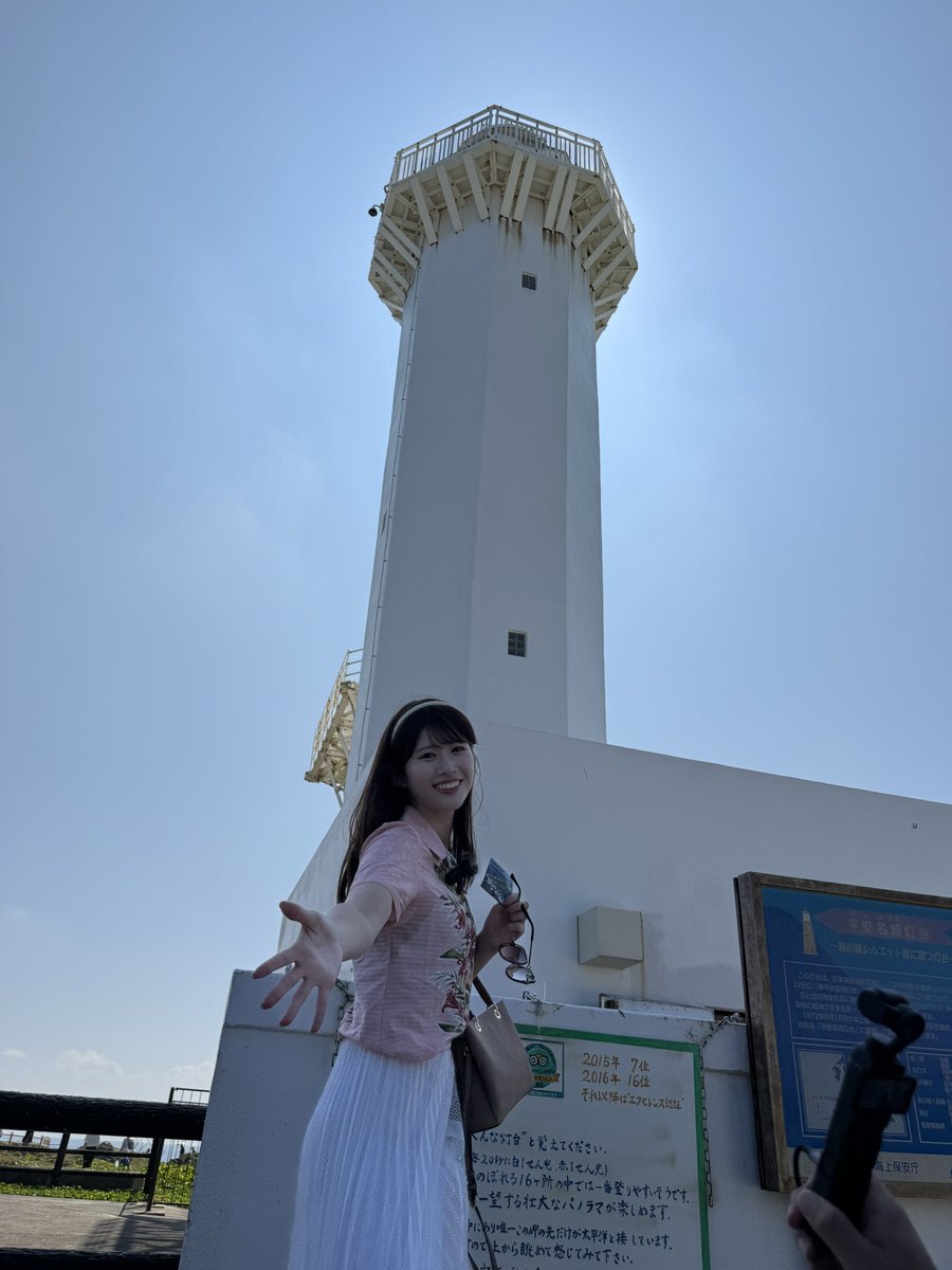 こちらは2日目、東平安名埼にある平安名埼灯台(へんなさきとうだい) 上に登るのは自由でしたが、ここまで来たらまあ登るよね!ということで皆んなで一緒に登った結果、展望スペースがギッチギチになりましたw #佐藤朱 #あかリス #平安名埼灯台 pic.x.com/RDYF3FejhU x.com/hikaru400x/sta…