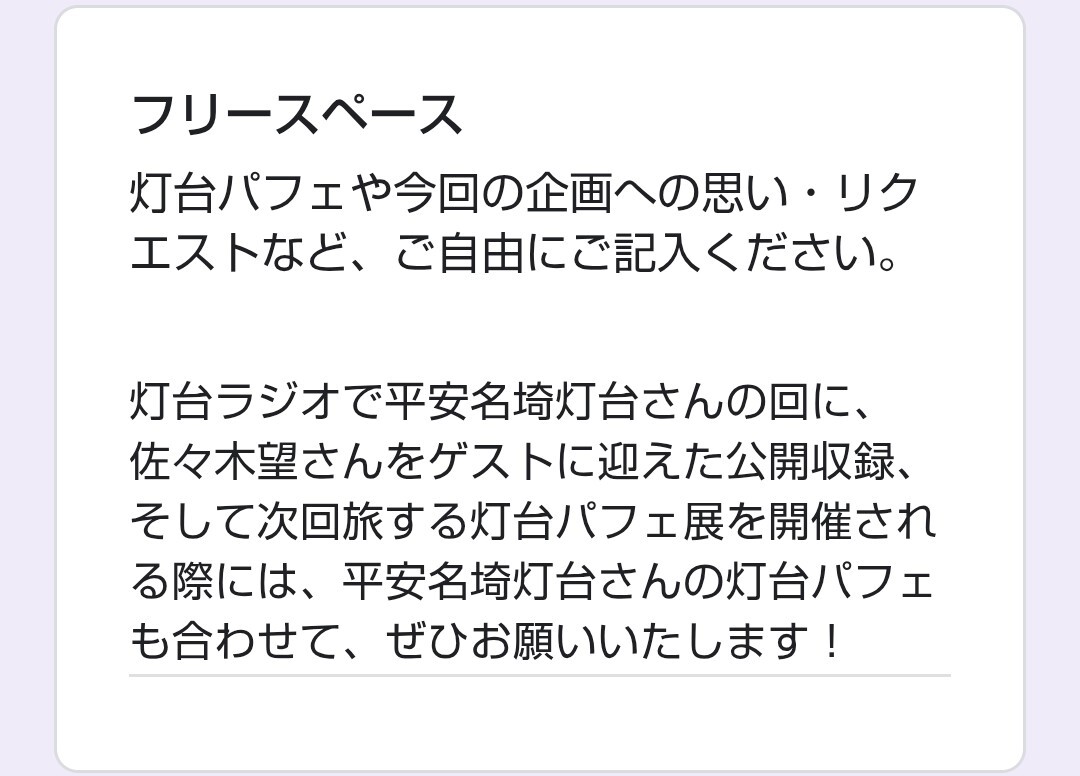 今回、灯台ラジオの公開収録に参加するんだけど、旅する灯台パフェ展やラジオのリクエストに、平安名埼灯台さんの回に佐々木望さんがゲストの公開収録 平安名埼灯台さんのパフェもお願いしてみた!実現したら嬉しいな( * ॑꒳ ॑* )✨ #燈の守り人 #平安名埼灯台 #佐々木望 pic.x.com/35mQwPjHlk