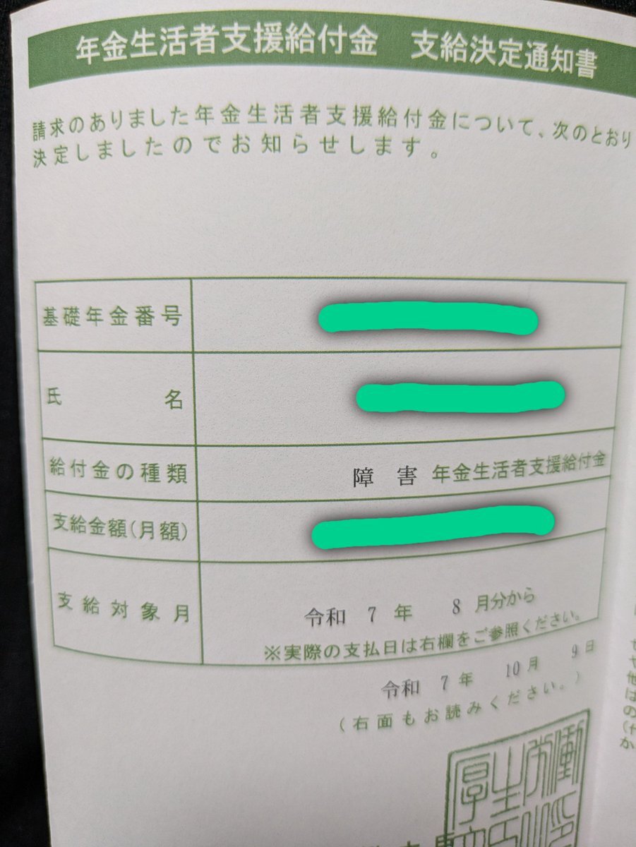 今日、年金機構から 年金生活者支援給付金の 決定通知書が届いた。 郵便やさ───ん(*」´□`)」 今日も配達ありがとう✩ #障害厚生年金 #年金生活者支援給付金 pic.x.com/E2Ur32I8Od