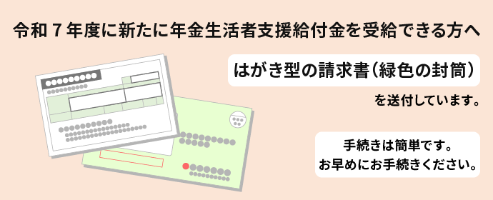 【緑色の封筒を開けましたか?】今年度、新たに #年金生活者支援給付金 を受給できる方へ、緑色の封筒で年金生活者支援給付金請求書(はがき型)を送付しています。令和7年12月末までに電子申請または郵送でお手続きください。詳しくはこちら。 nenkin.go.jp/service/jukyu/… pic.x.com/5JJGjCsJbD