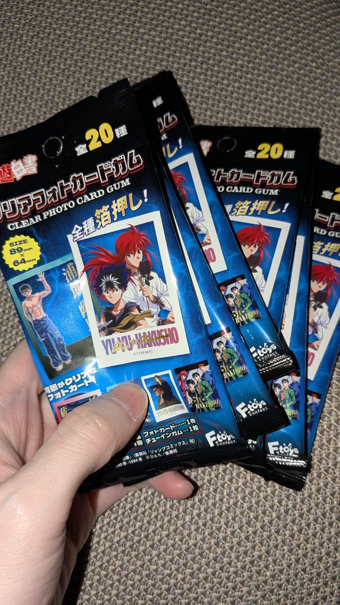 前回ダイソー行ったとき売ってなかったエフトイズの幽☆遊☆白書クリアフォトカードあった😊 とりあえず10枚買って一番欲しかった妖狐蔵馬&蔵馬と蔵馬&飛影出てくれたのは嬉しすぎる😭 ポストカードも気になる #幽遊白書 pic.x.com/w07URdZZEy
