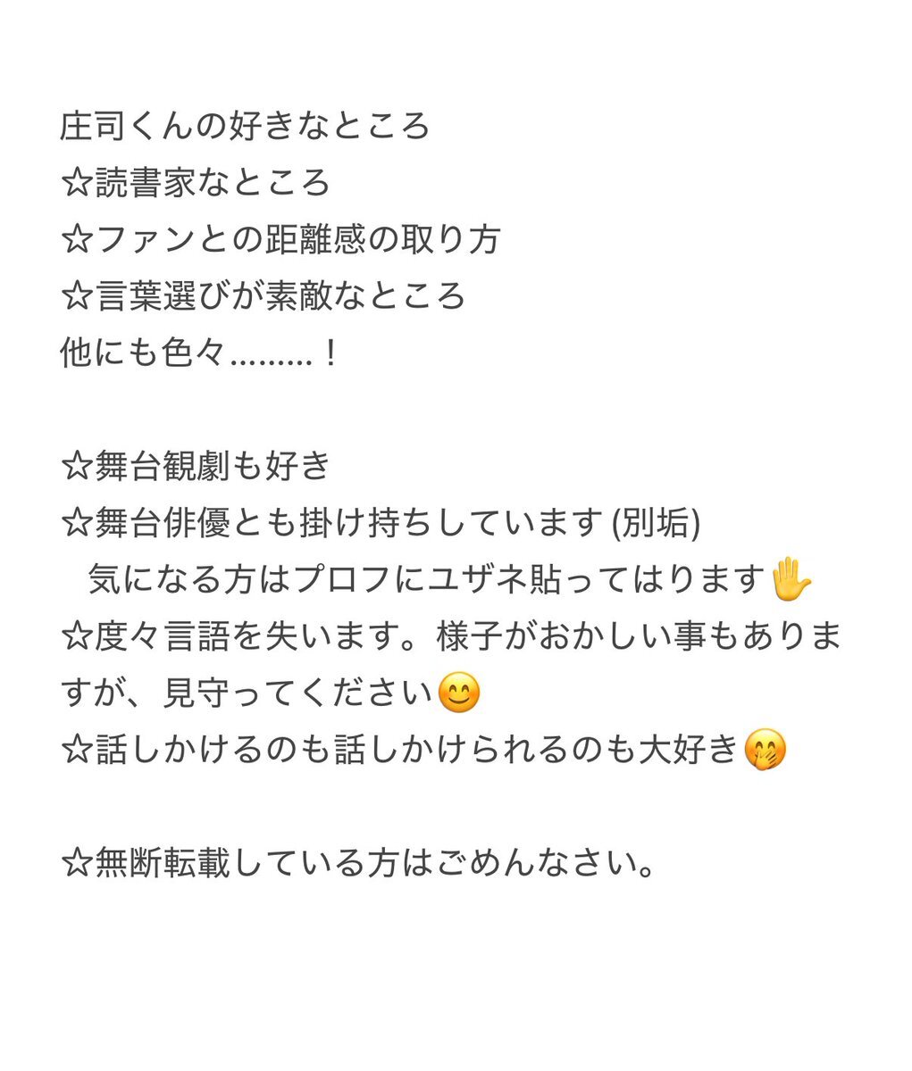 4010・ガヴからの転がり落ちるように図書館員。沼が深くて出られる気がしません。SnowMan渡辺さんも応援中。 周りにファンの方がいないので、こちらで楽しく庄司さんのお話がしたいです٩( ᐛ )وよろしくお願いします✨ 無断転載をされている方はごめんなさい。 #庄司浩平さん好きな人と繋がりたい