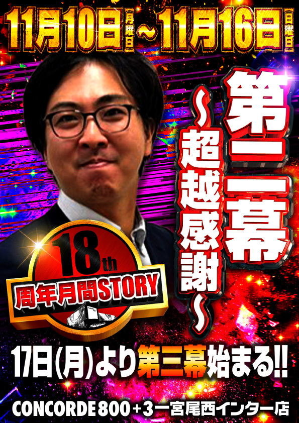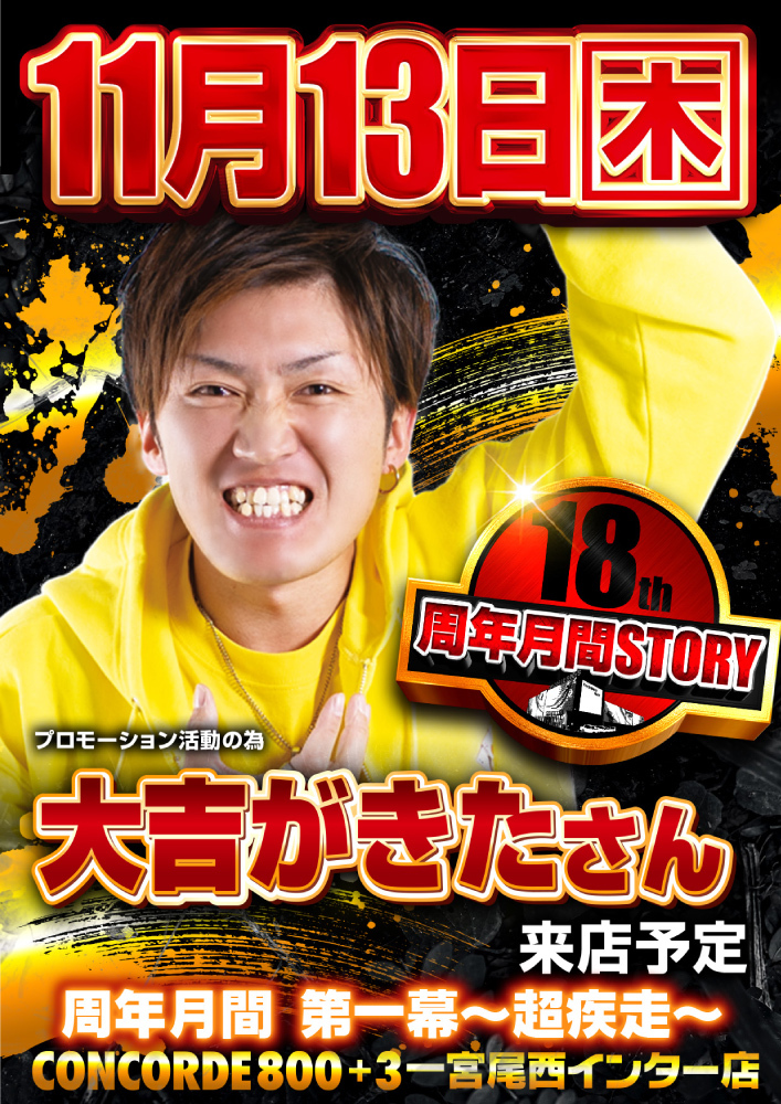 こんばんは🌙 #コンコルド一宮店 です 🌈明日11月13日(木)🌈 🔥朝9時開店🔥 抽選開始8時40分⚔Wチャレンジ開催予定⚔ 大吉がきたさん@ONEACE_DAI クロロえげつない調査隊来店予定‼ 皆様のご来店お待ちしております♡ #コンパチ #周年月間