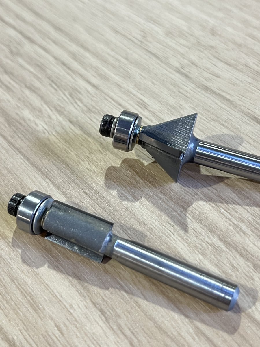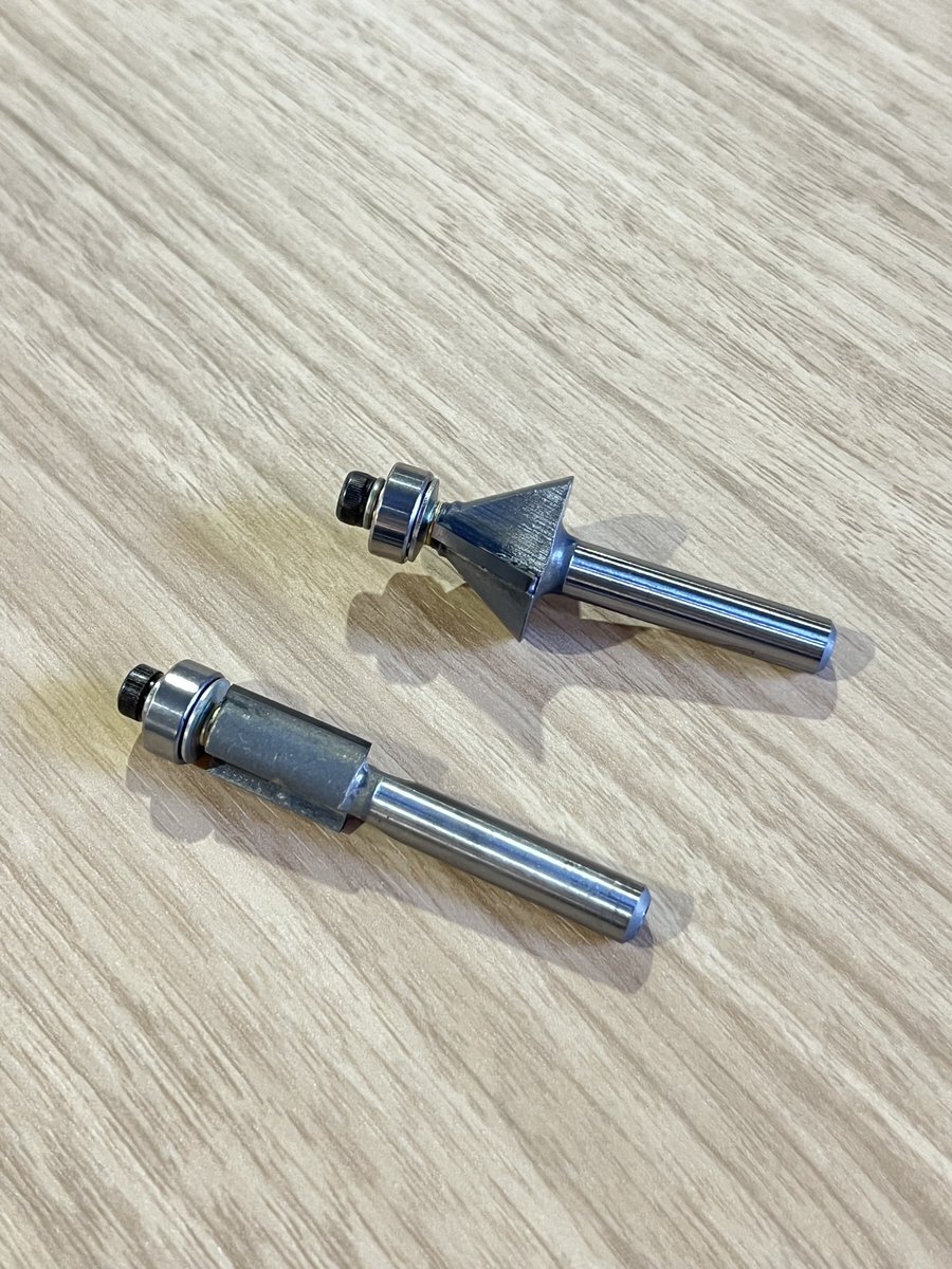 面取りや目地払いで使うトリマービットを新調しました。今回も大日商のカサ付きタイプ。面材の角をきれいに取ったり、目地を整えたりと出番の多い工具です。新品の刃は輝きが違いますね。 #面取り #目地払い #メラミン #トリマー #ビット #大日商 #造作家具 #店舗什器 #木工所 #家具屋 #空間創造 pic.x.com/BLR3cvQtrc