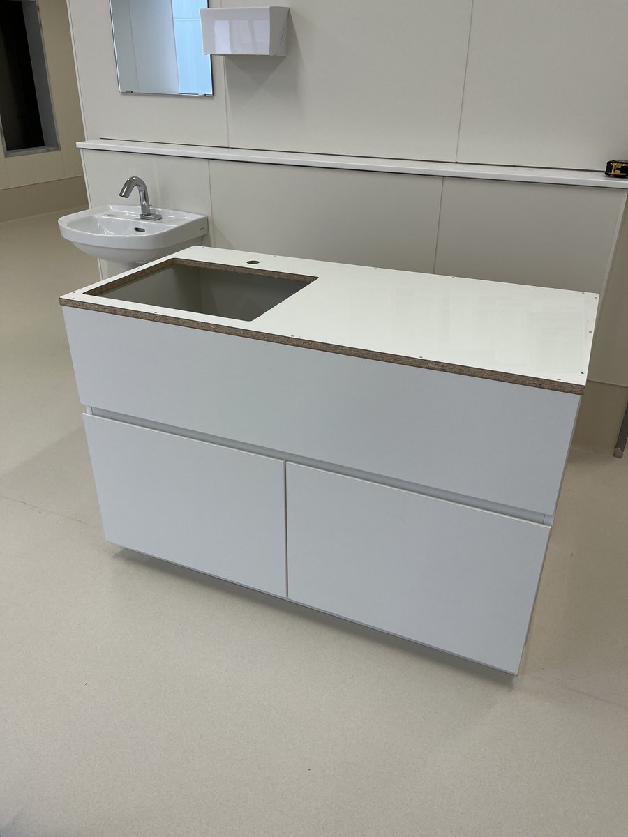 県内の総合病院に流し台を数点納品しました。白を基調とした低圧メラミン仕上げの本体に、SUS製シンクを組み合わせたシンプルな構成です。清潔感があり、病院空間によく馴染む仕上がりです。 #流し台 #ステンレスシンク #SUS #低圧メラミン #病院 #造作家具 #店舗什器 #木工所 #家具屋 #空間創造 pic.x.com/xZ1h343hUf