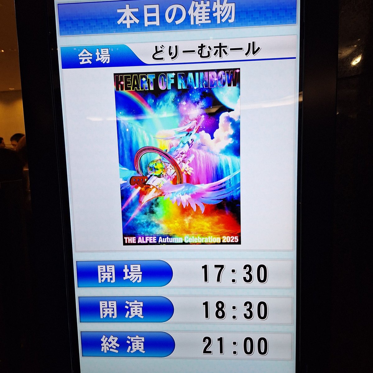 秋ツアー初日、 1曲目からぶっ飛ばしてて最高だった。 夏イベかと思うセトリ…! そして出し物…!! 出し物であんなにかっこいいのズルい… あれがこれから全国回ると思うとワクワクする。 やっぱりALFEEは最高。 #ALFEE #THEALFEE #府中の森芸術劇場 #HEARTofRAINBOW (開演18:30/終演20:57)