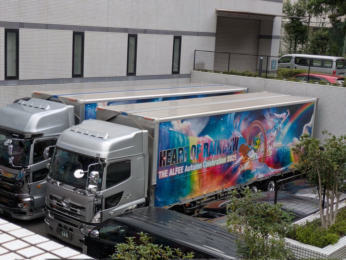 お散歩で行ける距離なのに…チケット🎫がないんです💧 中では物販の準備が粛々と進められていました(黒ジャージ、チラッと見えた👀) お目当てだったツアトラは発見できず🚚 府中はツアトラ見られないのでしょうか? #THEALFEE #府中の森芸術劇場 pic.x.com/5sQdiEVzVl