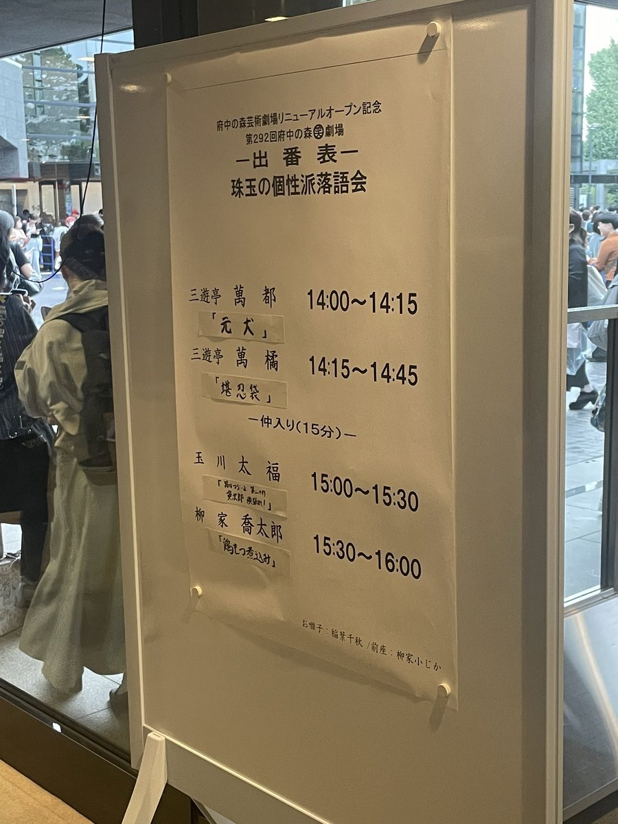 昨日、府中の森芸術劇場リニューアル記念、 珠玉の個性派落語会の昼の会に行ってきました!!みなさんとても面白かったぁ。特に喬太郎師匠の創作落語は笑いっぱなしだったわ。 #府中の森芸術劇場 #珠玉の個性派落語会 pic.x.com/5AYhq6ENlI