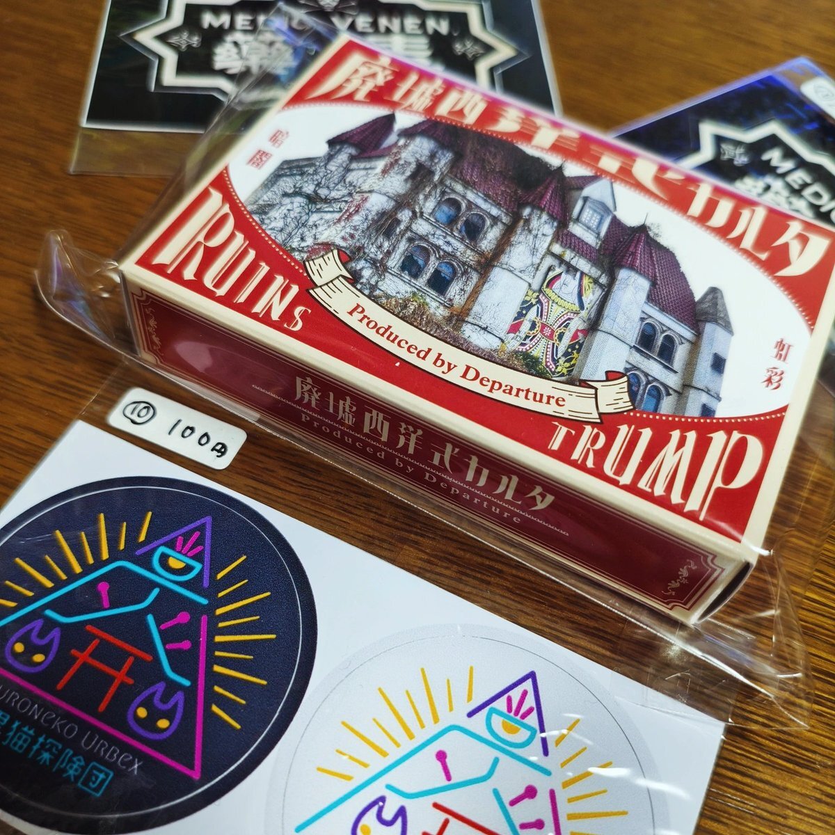 廃墟博覧会ロスを癒すべく、 #廃墟博覧会 で購入したものを見つめてみる。 他にもケジョヌマスキングテープとかも買いましたが、トランプは斬新だな、と思いました。 廃便所風鈴とか言うのもあったけど、あんなん欲しがる人は居るンスカねw。 pic.x.com/g4SpXJ5Tio