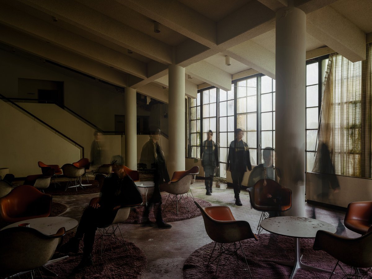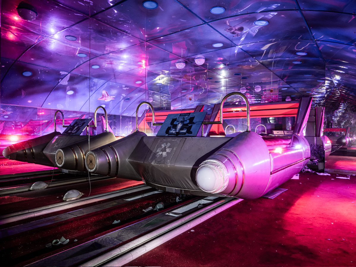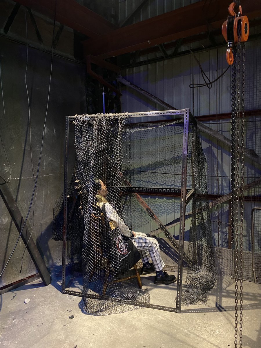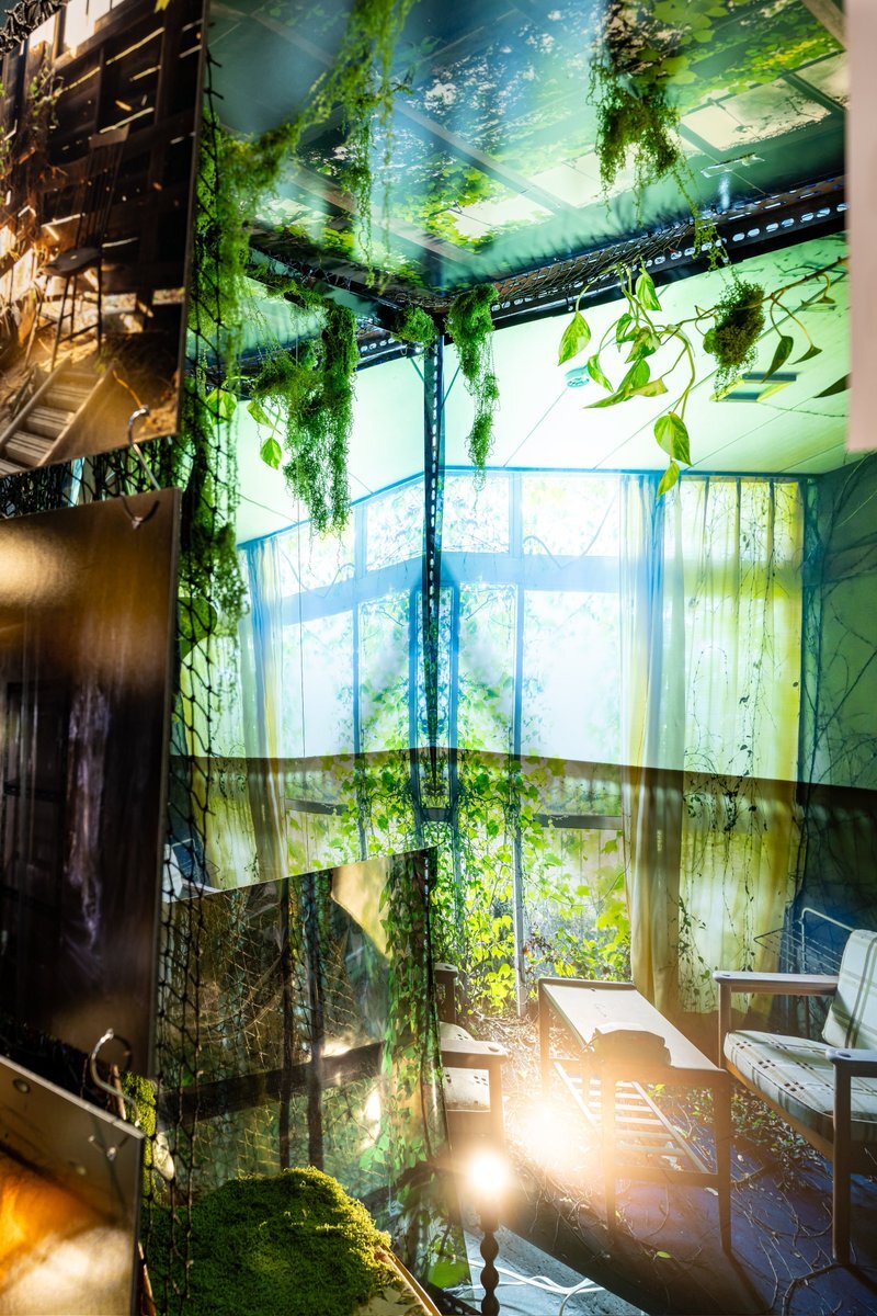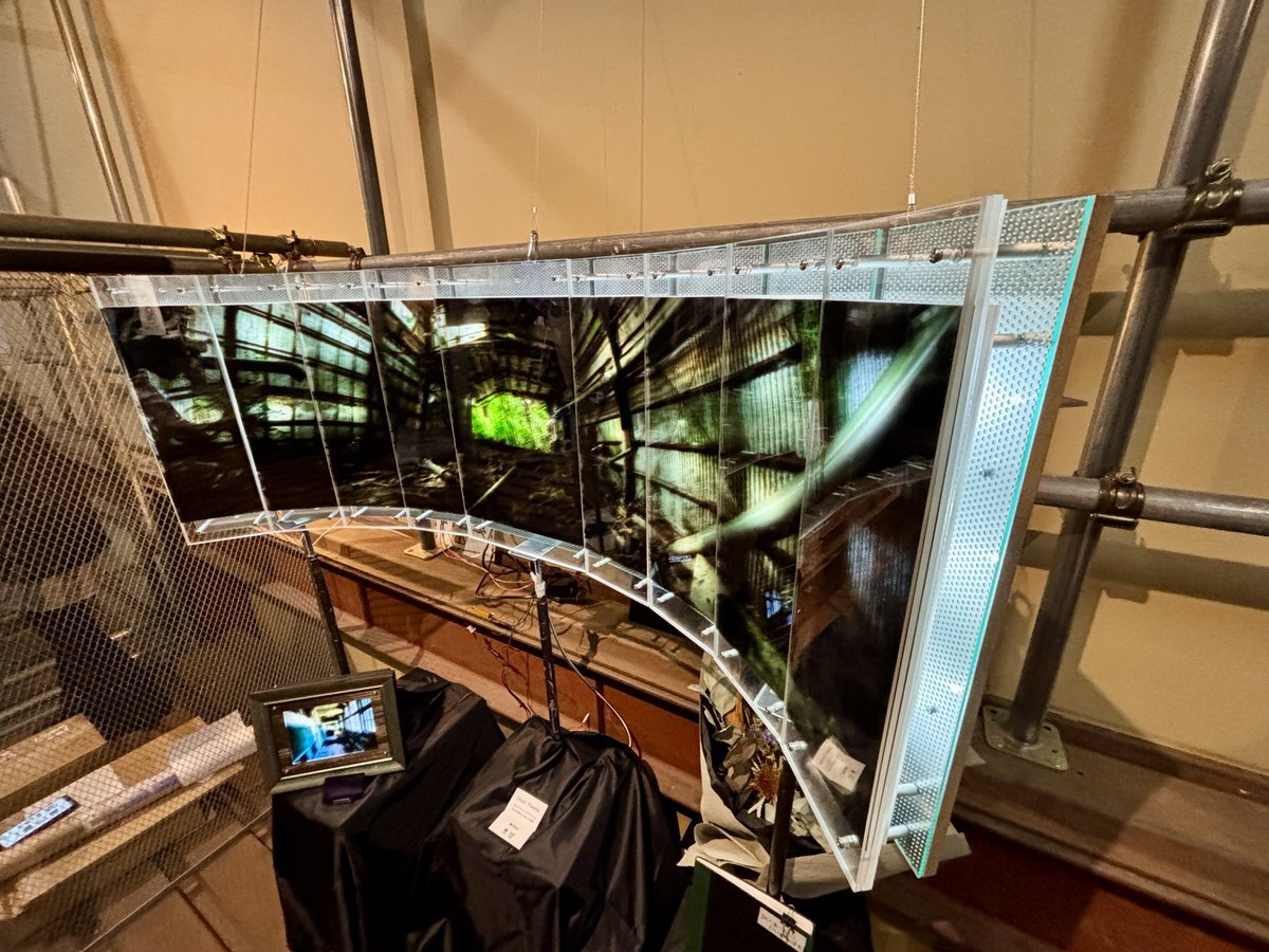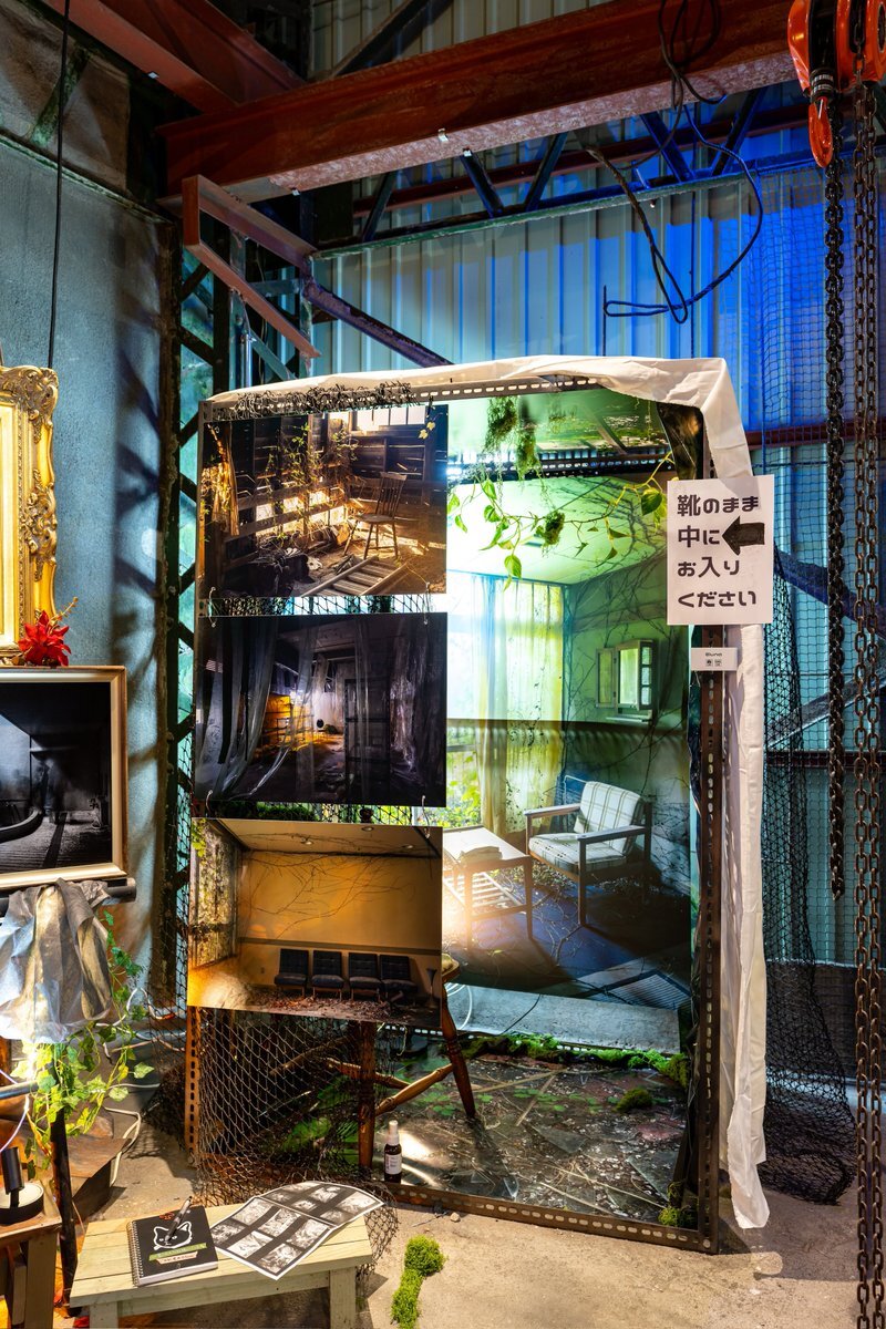 今回の #廃墟博覧会 の作品は、万博を意識した「廃墟パビリオン」がテーマでした。 元々スタジオに常設されていた謎の鉄枠を使い、大きな合わせ鏡と正面、上下左右を巨大な写真で覆い、まるで廃墟に入ったかのような空間を作ってみました。 実はそれっぽい匂いもスプレーしていましたが気付いたかな? pic.x.com/I6bOZ8GyUu x.com/sekishi_3/stat…