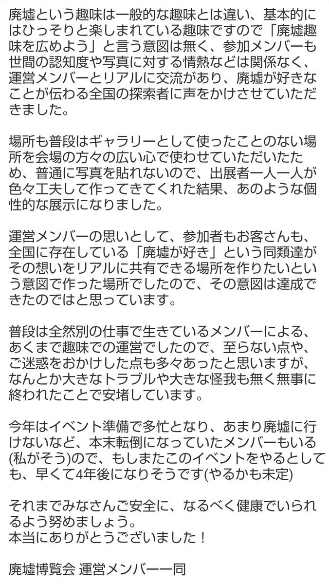 なんか長文になってしまったので興味ある人だけ展開して読んで頂ければ😅😅😅 #廃墟博覧会 昨日無事に終了しました。ご来場頂いた皆様、主催の皆様、出展者の皆様、改めてありがとうございました🙇‍♂️ pic.x.com/rtapT7k2FP