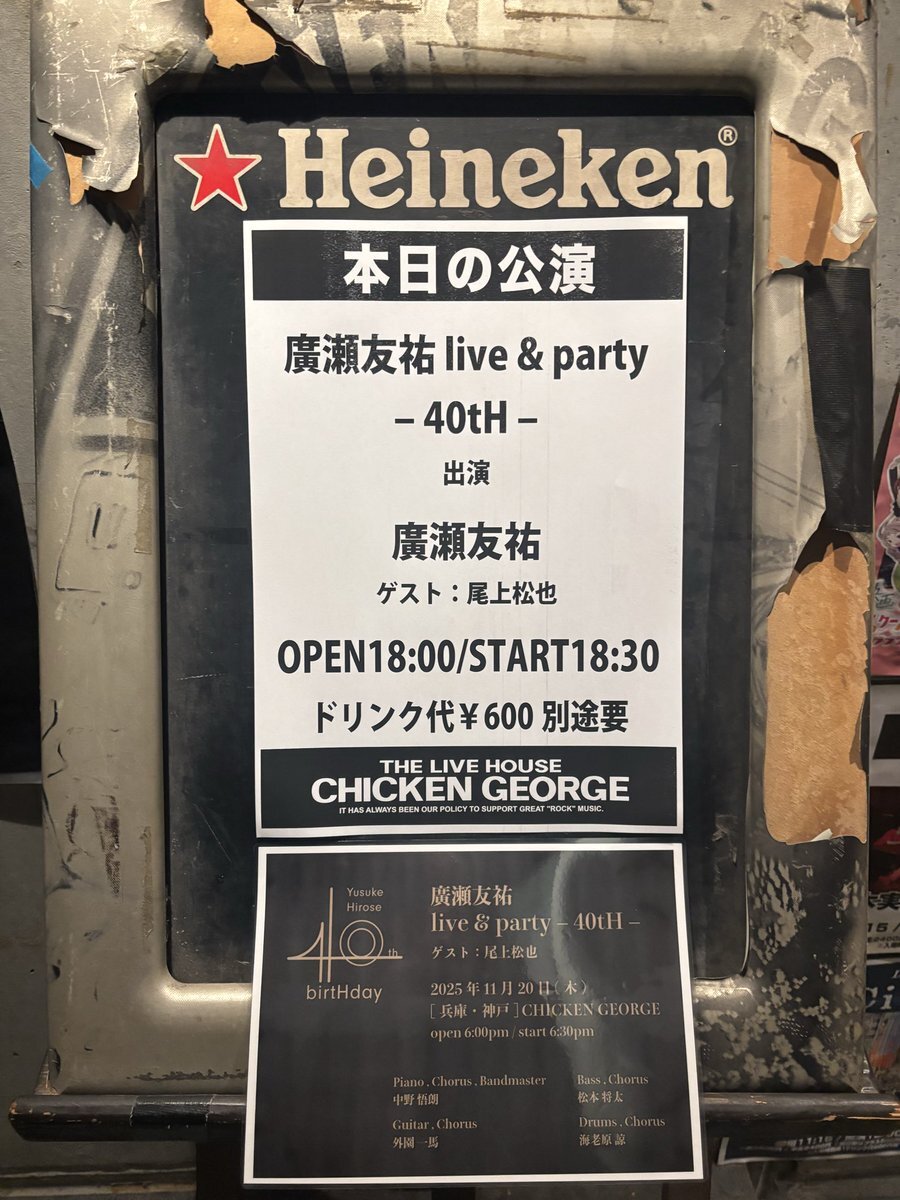 開演しました!! #廣瀬友祐 live & party – 40tH – ゲスト: #尾上松也 2025年11/20(木) [兵庫・神戸] CHICKEN GEORGE hiroseyusuke.info/free/40th pic.x.com/iw8ajFmU5q