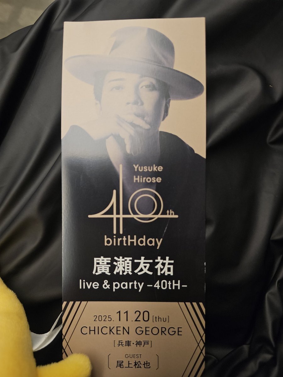 🪩2025/11/20 #廣瀬友祐 live & party – 40tH – に参加しました✨ まさかの最前でドセン(たぶん…)付近に座らせていただき、とても楽しい時間を過ごせました😭 歌もトークも楽しくて、本当に神戸まで来て良かったです…❕ 聴きたかったあの曲も、聴いてみたかったあの曲も聴けて大満足でした🎉 pic.x.com/CDIkXKqjYr