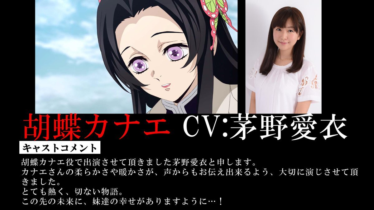 【新キャスト情報】 第25話にて登場した胡蝶カナエ役は茅野愛衣さんに決定しました! しのぶの姉で、おっとりした雰囲気を纏うカナエ。 茅野愛衣さんよりコメントも到着! kimetsu.com/anime/ #鬼滅の刃