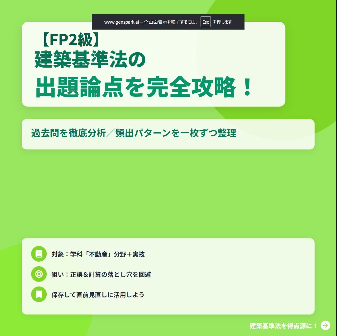 🔥FP2級 受験者必見!「建築基準法」で差をつける! 建築基準法の計算問題、いつも不安じゃないですか? 過去問を徹底分析した【出題論点まとめ資料】を作成しました! ✅ 頻出パターンを1枚に凝縮 ✅ 正誤問題・計算問題の落とし穴を完全回避 ✅ 直前見直しに最強の1枚 #FP2級 #FP試験 #建築基準法 pic.x.com/kmX6W5mjBe
