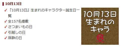 \\🌟本日の誕生日情報🌟// ✎𓂃『10月13日』が誕生日の キャラクターは157名です。 お誕生日おめでとう #さつまいもの日 #引越しの日 #麻酔の日 キャラクター誕生日366👇 days366.com/title/10_13.ht… #キャラクター誕生日366 #10月13日 pic.x.com/kblNTlqWuG
