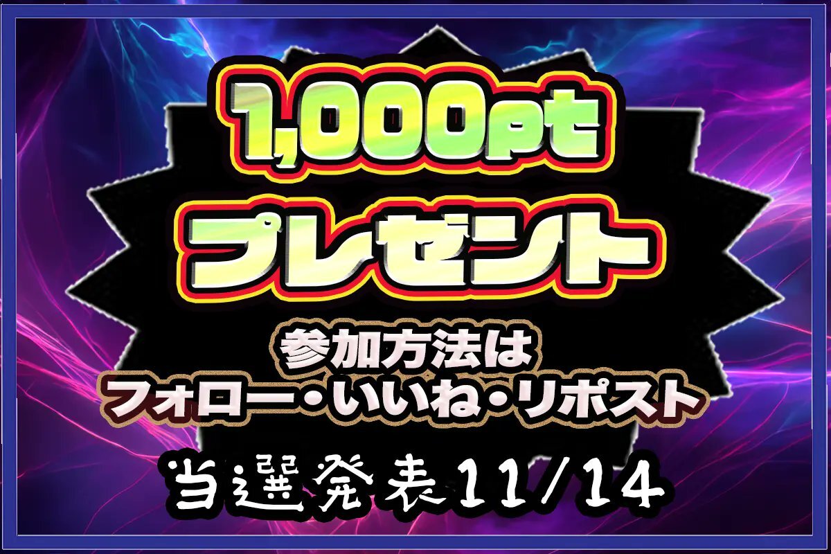 ⭐️無料でポイントキャンペーン⭐️ 🎁1,000pt当選🎁 ✅ @CARDEL_oripa をフォロー ✅この投稿 or 応募期間中の投稿に 【いいね&リポスト】 🔥リプライで好きなポケカを書いてブースト🔥 📣当選者発表11/14 #プレゼント企画