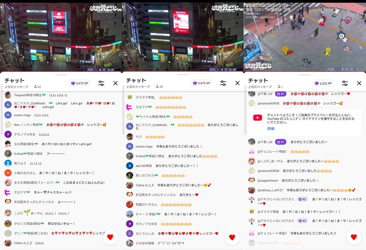 2025年11月18日 渋谷愛ビジョン❤️ チャット組のみなさん ありがとうございました😊 今回は、チャミさんのYouTube配信と 2窓でお送りします! #渋谷愛ビジョン #渋谷愛8サポーター #京都・かめおか観光PR大使 #彩羽真矢 #宝塚OG pic.x.com/6DSyRva1nD
